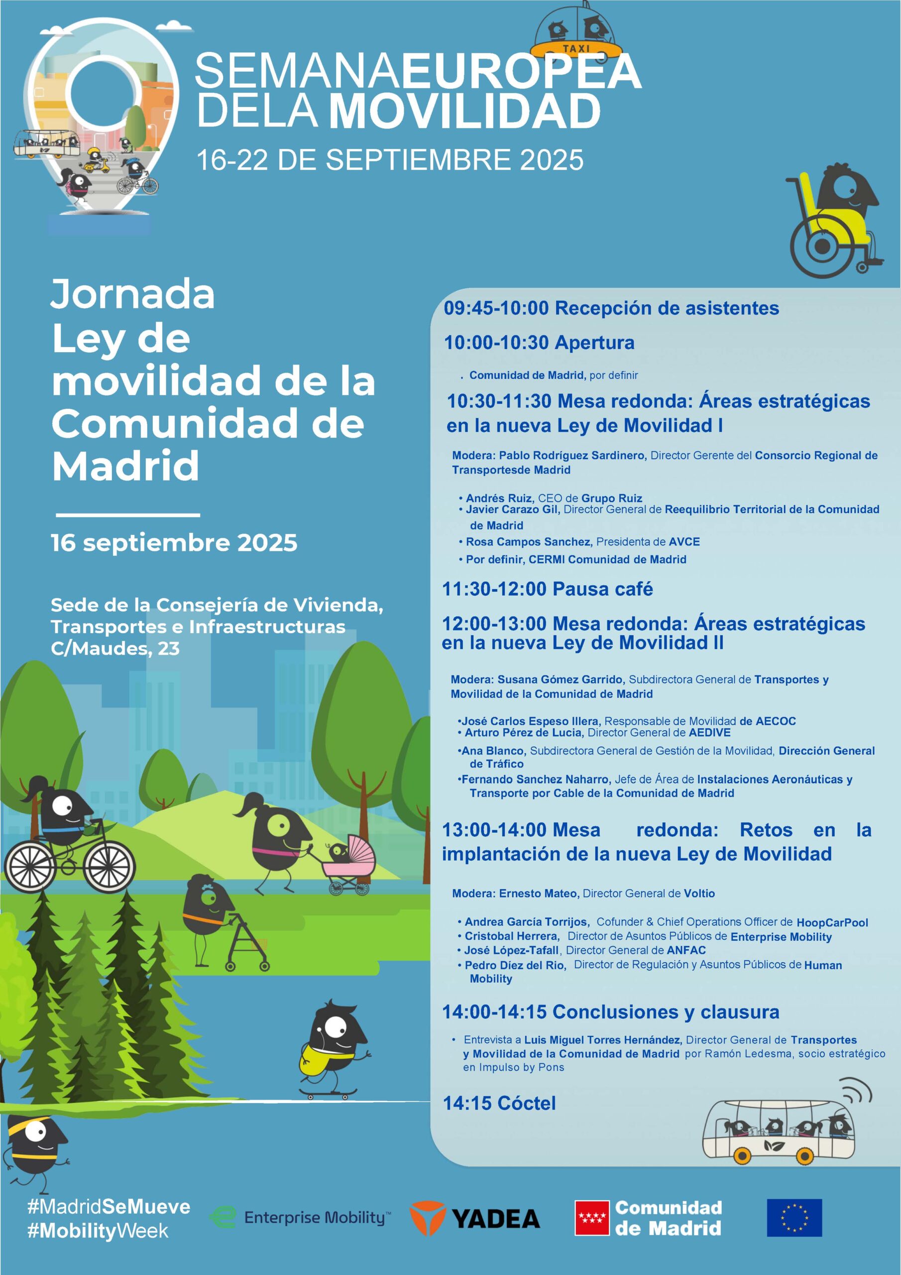 El próximo 16 de septiembre, la Comunidad de Madrid celebra la jornada “Ley de Movilidad de la Comunidad de Madrid”, que reunirá en la Sala Antonio Palacios de la Consejería de Transportes a referentes del sector para analizar los retos y oportunidades de esta nueva normativa en el marco de la Semana Europea de la Movilidad.
